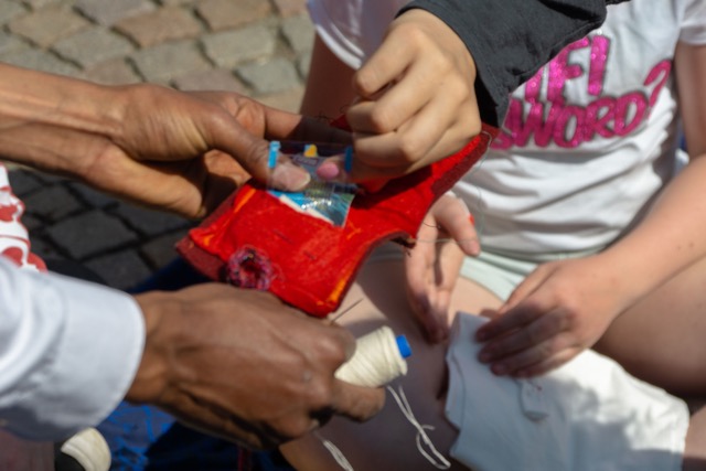 querSCHNITT ist ein Kunstprojekt mit der Intention, einen interkulturellen Austausch über das textile Medium im öffentlichen Raum zu schaffen. Die Aktion greift die Tradition des Wanderhandwerks auf, um so auf das Thema der Mobilität und des Unterwegsseins ohne fixen Standort einzugehen – an der Schnittstelle von Tourismus, Migration und globalem wirtschaftlichen Austausch.